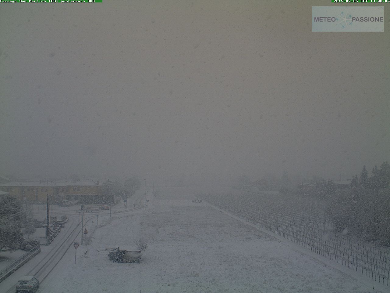 Nevicata seria dalle 12:40 circa, il tetto della Smart nera usato come riferimento si è finalmente arreso ed ha cambiato colore.