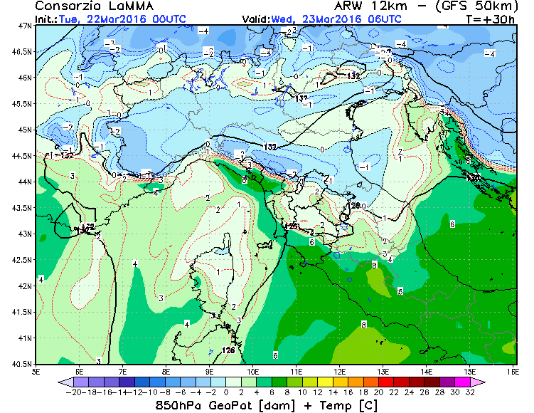 Tornando al freddo previsto, sembra che ancora una -2/-3 a 850hPa possa entrare per Mercoledì. Nulla di eccezionale, ma non dobbiamo dimenticarci di essere a fine Marzo
