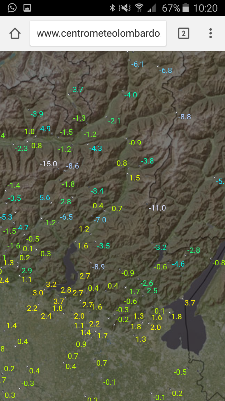 per quelli che dicono franciacorta calda, nn preoccupatevi, son bassi i dewp e umidità, con l'arrivo delle precipitazioni scende, cn qst condizioni attuali può nevicare in positivo inizialmente