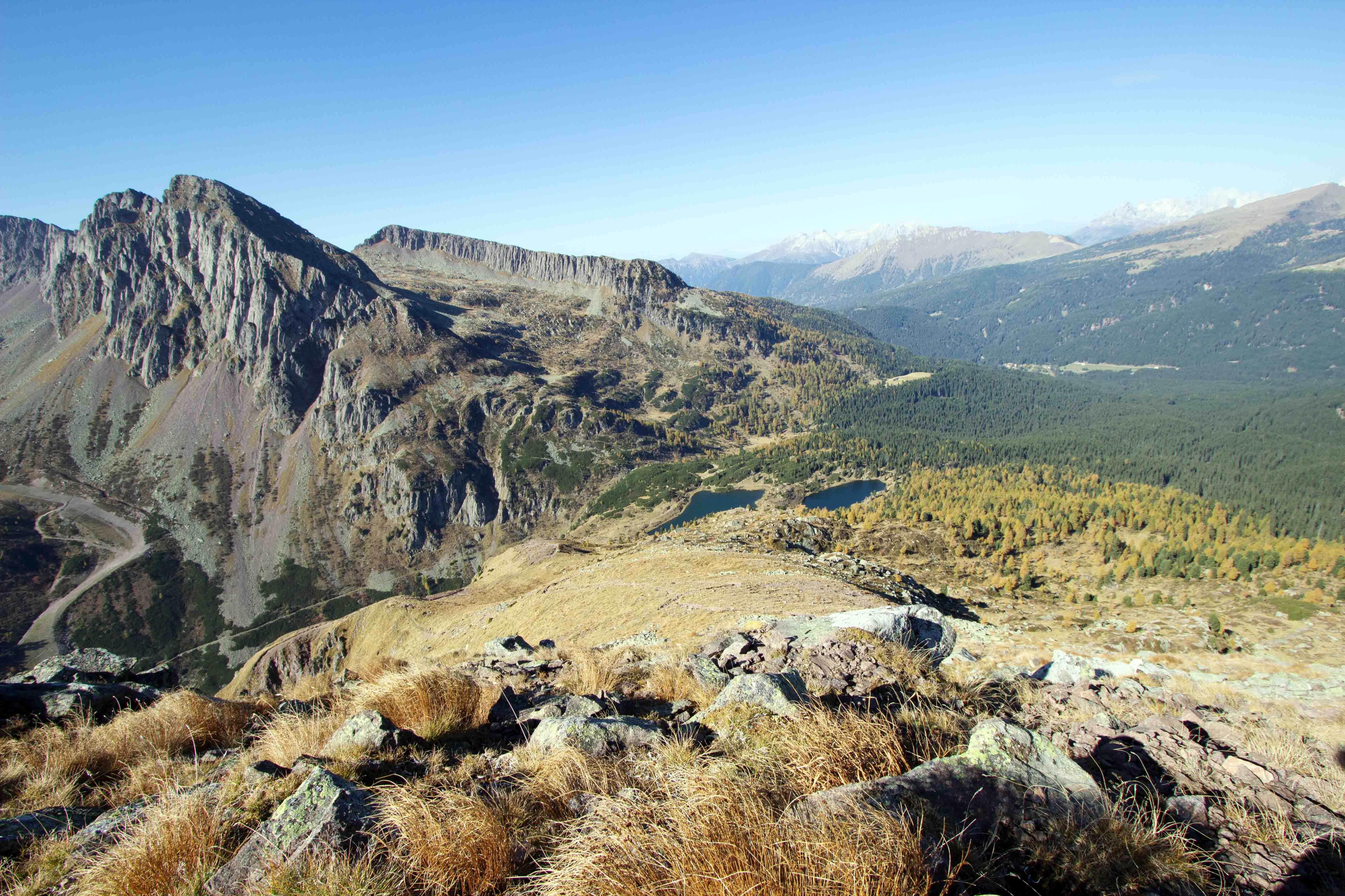 Il 14 ottobre vado nella zona del Passo Rolle; lascio la macchina a malga Rolle (1900m, si trova poco prima del passo) e raggiungo i laghi del Colbricon (1927m) e da li salgo alla cima Cavallazza (2324m).