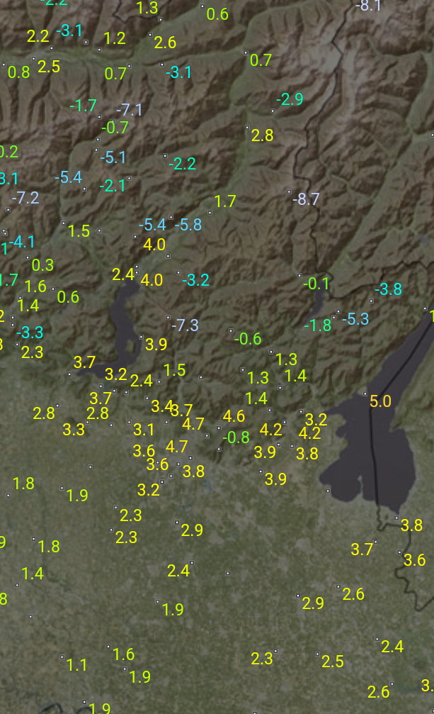 Sfruttiamo i dp negativi localmente ma sarà neve dai 300-400 metri con fenomeni deboli nella notte.