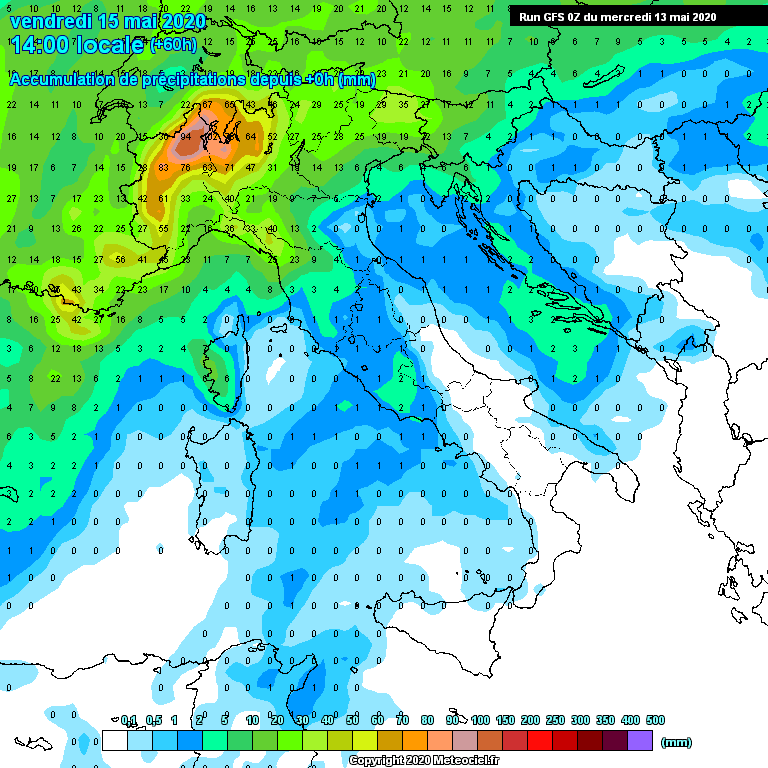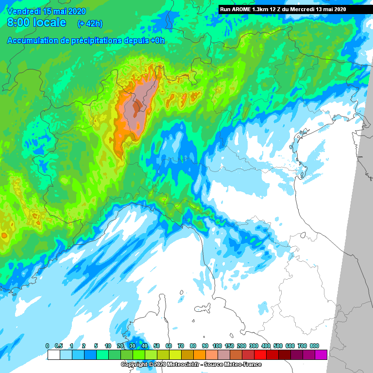 Arome migliorato rispetto ad ieri ma sembra che basti spostarsi di 60-80 km per passare da 10 a 50 mm ... vediamo se con lo 06 conferma.