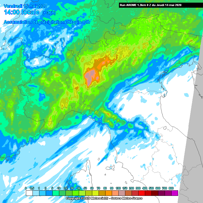 Arome vede deboli precipitazioni intorno a mezzogiorno. Perturbazione più intensa venerdì ma sembra ancora una volta colpire le solite aree.