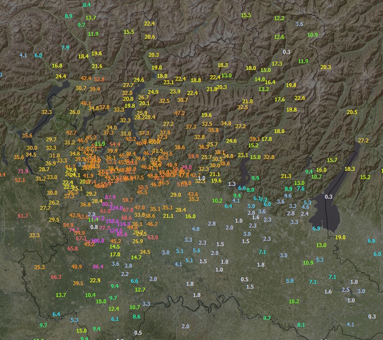 Si prepara un evento molto rilevante per Ovest Lombardia, zona dei Laghi ed Est Piemonte, colpiti dapprima da una chiara linea di convergenza che poi evolve in una occlusione molto attiva, tra stasera e domani mattina presto. Sul Bresciano, specie la parte Est, quasi nulla a confronto. Non mi stupirei di vedere oltre 100 mm in parecchie zone entro domattina tra Novara, Varese, Biella, Como, Milano... con magari Brescia a 10 o anche meno.