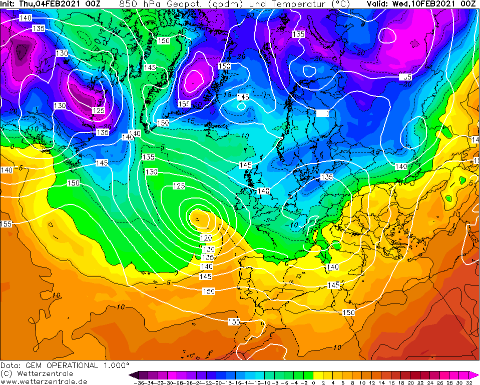 La zonalità riparte alla grande, l'aria fredda sembra rimanere sempre oltralpe nel periodo 9-11 Febbraio, per poi cedere e sparire dall'Europa occidentale.