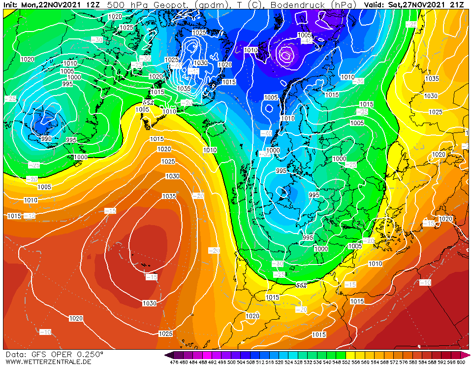 Dopo i peggioramenti di Giovedì(QN 1200-1400m) e Sabato (QN 1000-1200m) entra il primo freddino stagionale.. ad oggi sembra ingresso favonico, ma siamo sulle 200h. Per Lunedì prossimo siamo infatti al limite comunque per qualche rapida precipitazione, nevosa questa volta a quote molto più basse. La fase fredda potrebbe prolungarsi fino ai primi giorni di Dicembre.