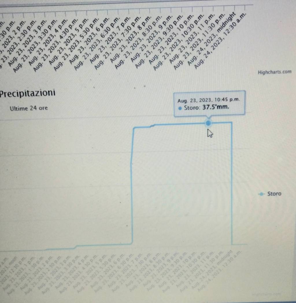 Temporali spettacolari nel pomeriggio. Ora schiarita in corso. Mio accumulo giornaliero fino a questo momento: 58 mm