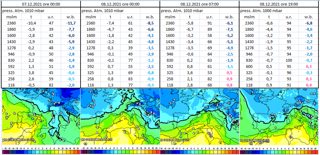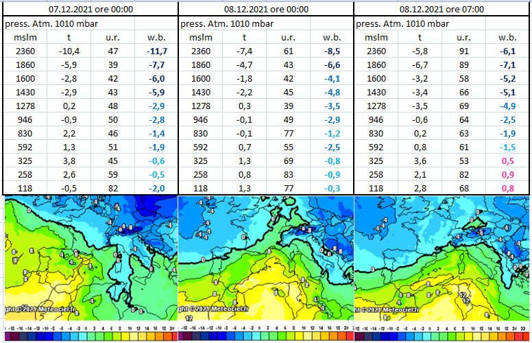 Si nota l'umidificazione in quota mentre sotto i 1500 siamo ancora secchi.