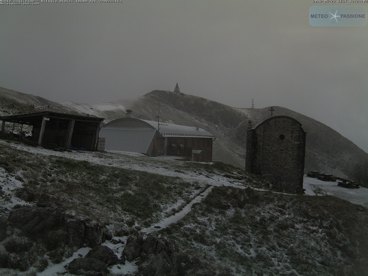 qui in città passata velocissima (una dozzina di minuti ed una decina di preziosi mm accumulati). Ora tutto più a nord ed ovest, con neve intorno ai 1800 mt