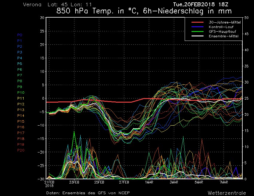 La media degli spaghi insiste su una rapida risalita e sulla mancanza di precipitazioni nel momento clou... vediamo tra un paio di giorni se cambierà qualcosa..