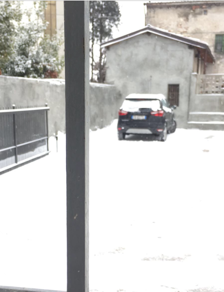 Misurazione appena effettuato 6,5 cm neve forte visibilità 50 m sembra che villa Carcina sia stata colpita affondata per bene, scorcio di casa