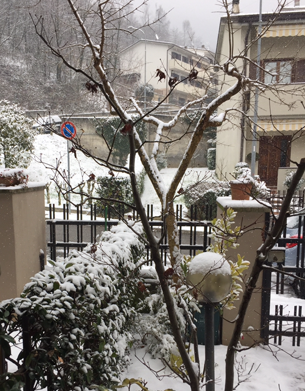 Mondo neve a Villa Carcina fiocchi grandi come amarene -1,9 oggi però si sale