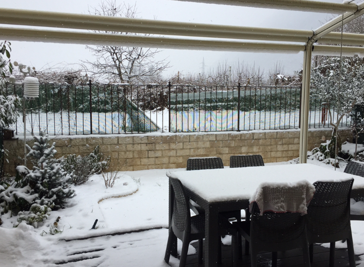 Bella nevicata in corso, appena misurati 7 cm su tavoletta, non male davvero...
