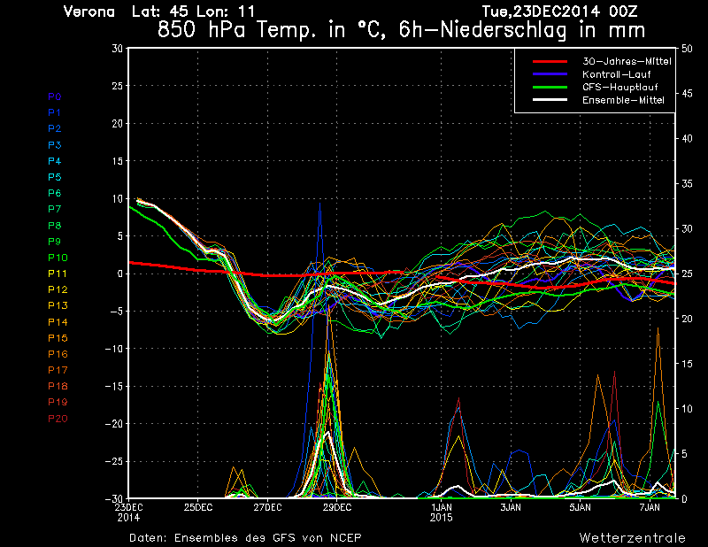 Dagli spaghi parrebbe che l'irruzione del post Natale sia un episodio isolato e poi si ritornerebbe sopra media. Vedremo se invece la depressione si muoverà in modo da risucchiare altro freddo.