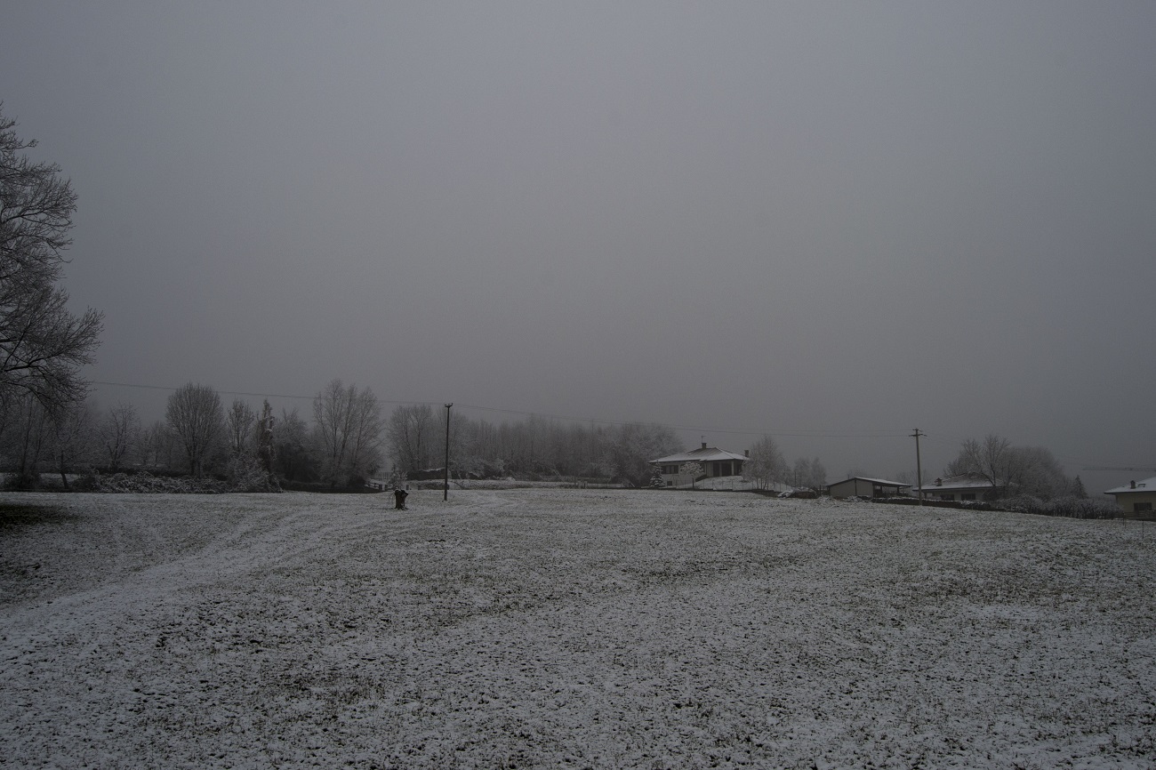 Correggo a 1,5 cm velo bianco neve ancora ben presente su piante ed erba