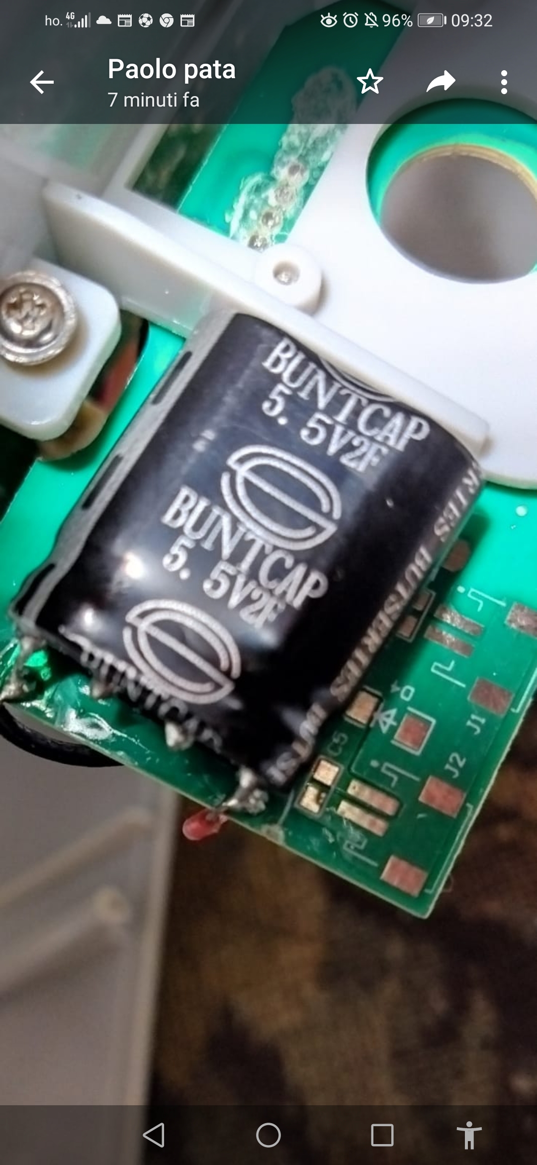 Questo è il supercondensatore (2 accoppiati) da 2 Farad totali a 5.5V, verifica di avere qualcosa di equivalente e che non abbia la minima traccia di perdite del suo elettrolita interno.