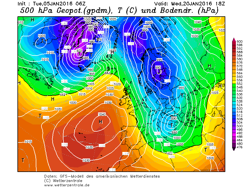 Successivamente, nel periodo 16-20 Gennaio, calo termico ancora più sensibile di matrice artico-continentale con iniziale blocking atlantico e successivo probabile, ma ancora da accertare, ponte di Weikoff.