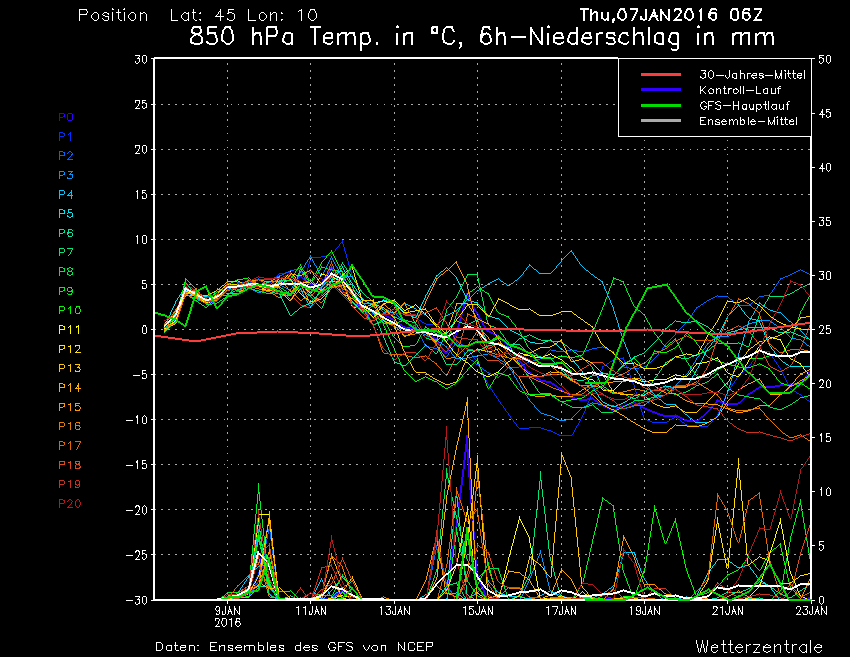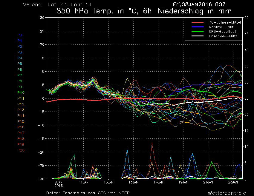 Gli spaghi di GFS06 di ieri erano molto promettenti in merito al freddo in arrivo. Le ultime emissioni di gfs (ukmo simili) invece stanno gradualmente alzando lo spago bianco. Mi sa che come al solito tra 4-5 run lo troveremo sopra quello rosso. E le agoniate precipitazioni proseguono di pari passo verso il nulla di fatto...